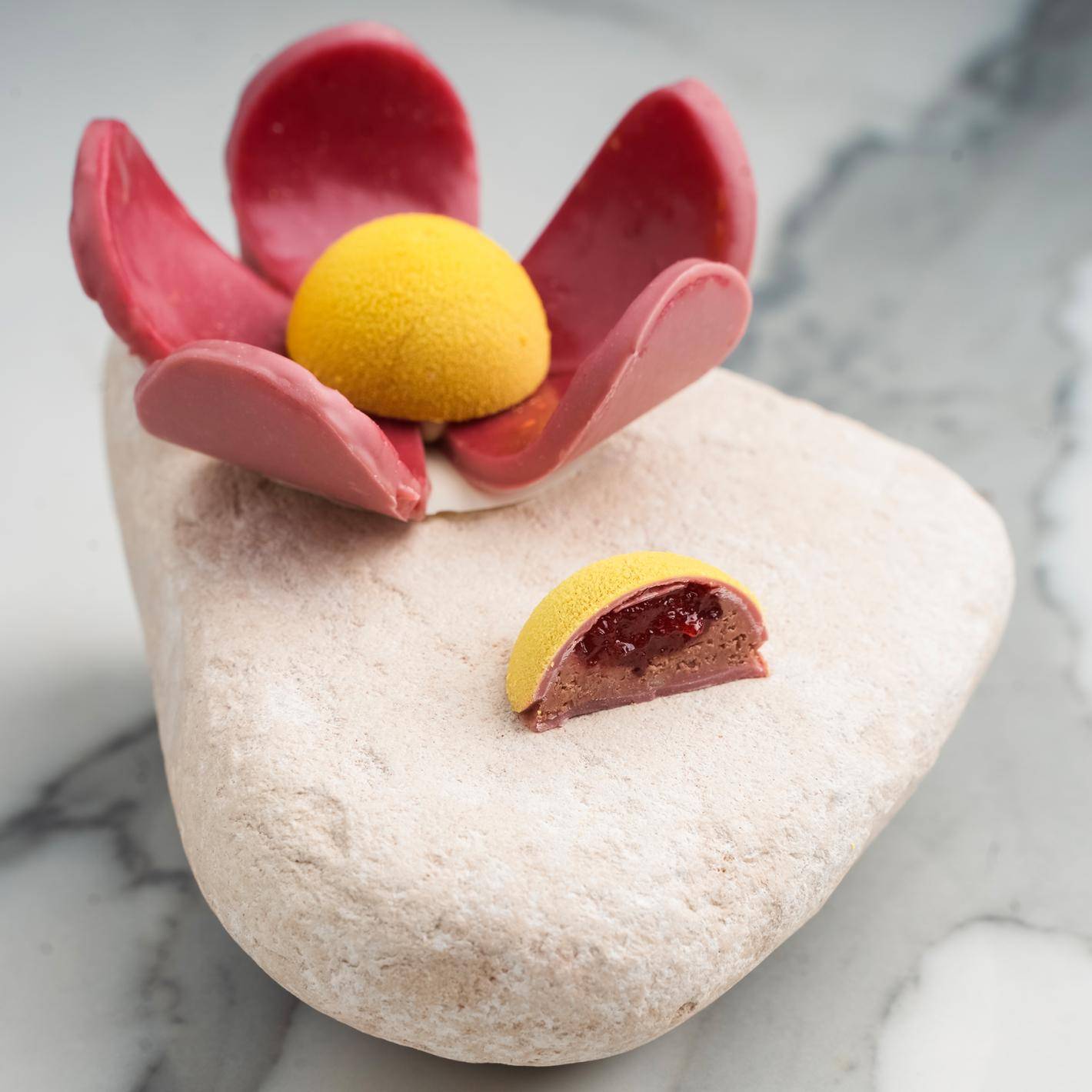 If you are a fan of our caramel chocolate, you will enjoy the delicacy Ruby Caramel flower, which has citrus aromas in it.